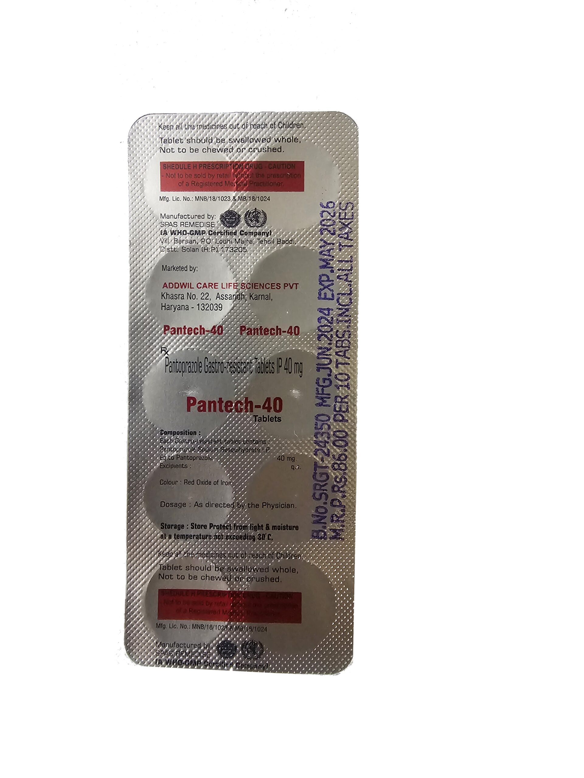 Each tablet contains 20mg or 40mg of pantoprazole.